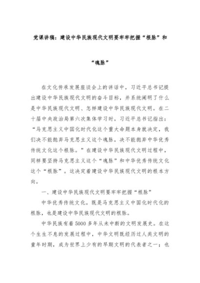 【七哥公文】2024年:党课讲稿:建设中华民族现代文明要牢牢把握“根脉”和“魂脉”+更多免费公文+VX:QiGeGongWen2024