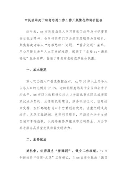 / 【七哥公文】2024年:市民政局关于助老志愿工作工作开展情况的调研报告+更多免费公文+VX:QiGeGongWen2024