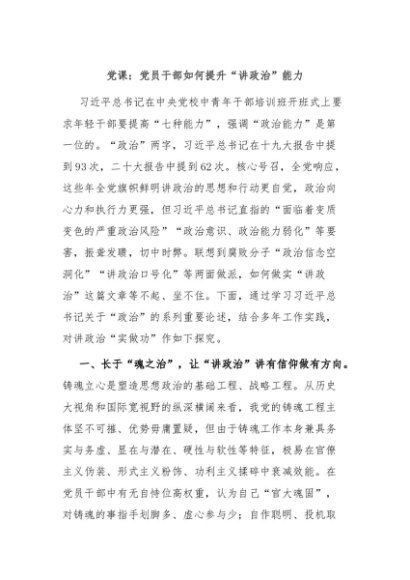 / 【七哥公文】2024年:党课:党员干部如何提升“讲政治”能力+更多免费公文+VX:QiGeGongWen2024