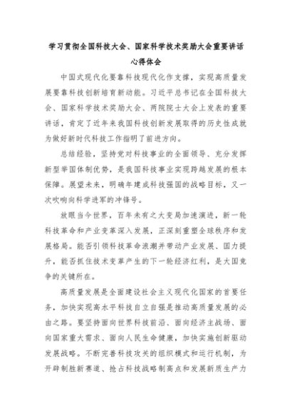 【七哥公文】2024年:学习贯彻全国科技大会、国家科学技术奖励大会重要讲话心得体会+更多免费公文+VX:QiGeGongWen2024