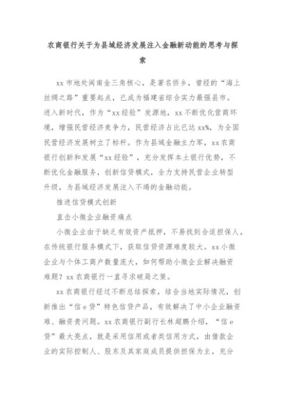 【七哥公文】2024年:农商银行关于为县域经济发展注入金融新动能的思考与探索+更多免费公文+VX:QiGeGongWen2024