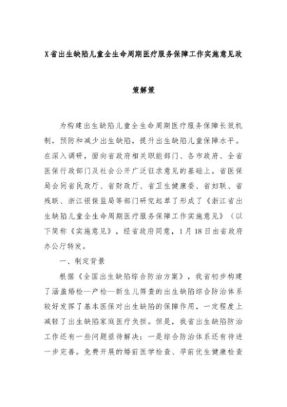 【七哥公文】2024年:X省出生缺陷儿童全生命周期医疗服务保障工作实施意见政策解策+更多免费公文+VX:QiGeGongWen2024
