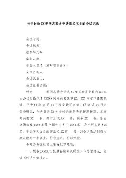 / 【七哥公文】2024年:关于讨论XX等同志转为中共正式党员的会议记录+更多免费公文+VX:QiGeGongWen2024