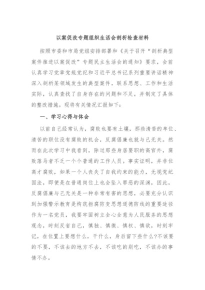 / 【七哥公文】2024年:以案促改专题组织生活会剖析检查材料+更多免费公文+VX:QiGeGongWen2024