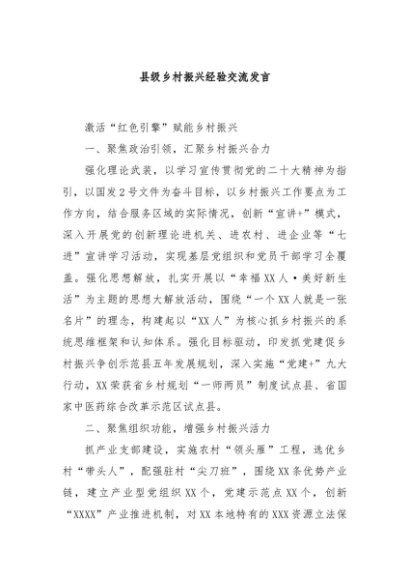 / 【七哥公文】2024年:县级乡村振兴经验交流发言+更多免费公文+VX:QiGeGongWen2024