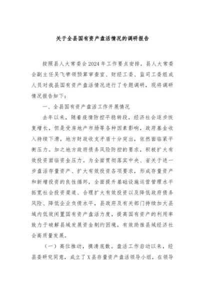 / 【七哥公文】2024年:关于全县国有资产盘活情况的调研报告+更多免费公文+VX:QiGeGongWen2024