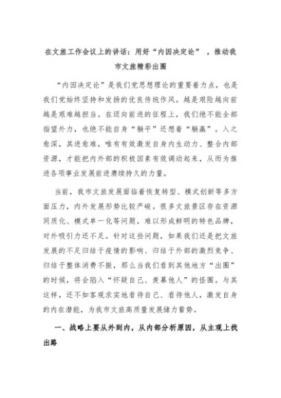 【七哥公文】2024年:在文旅工作会议上的讲话:用好“内因决定论” ,推动我市文旅精彩出圈+更多免费公文+VX:QiGeGongWen2024