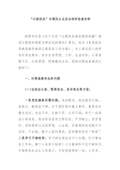 / 【七哥公文】2024年:“以案促改”专题民主生活会剖析检查材料+更多免费公文+VX:QiGeGongWen2024