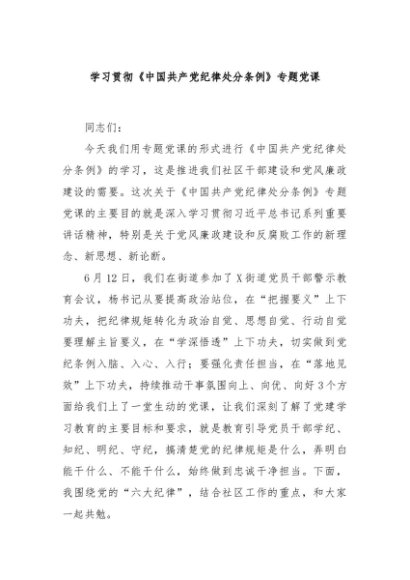 【七哥公文】2024年:学习贯彻《中国共产党纪律处分条例》专题党课+更多免费公文+VX:QiGeGongWen2024