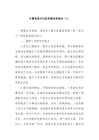 / 【七哥公文】2024年:乡镇党委书记抓党建述职报告(1)+更多免费公文+VX:QiGeGongWen2024