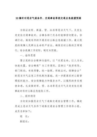 【七哥公文】2024年:XX镇针对恶劣气候条件、交通事故等级交通应急救援预案+更多免费公文+VX:QiGeGongWen2024