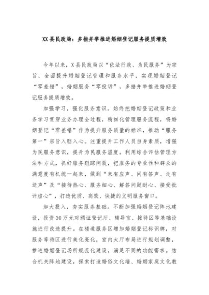 【七哥公文】2024年:XX县民政局:多措并举推进婚姻登记服务提质增效+更多免费公文+VX:QiGeGongWen2024