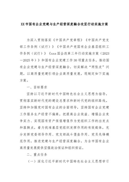 【七哥公文】2024年:XX市国有企业党建与生产经营深度融合攻坚行动实施方案+更多免费公文+VX:QiGeGongWen2024