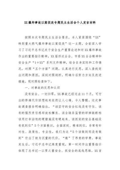 / 【七哥公文】2024年:XX爆炸事故以案促改专题民主生活会个人发言材料+更多免费公文+VX:QiGeGongWen2024