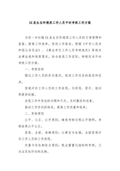 / 【七哥公文】2024年:XX县生态环境局工作人员平时考核工作方案+更多免费公文+VX:QiGeGongWen2024