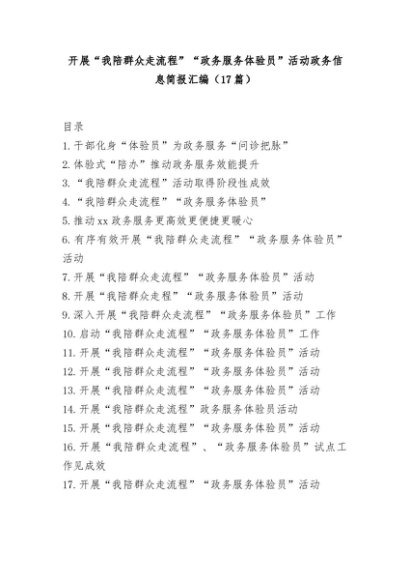 【七哥公文】2024年:(17篇)开展“我陪群众走流程”“政务服务体验员”活动政务信息简报汇编+更多免费公文+VX:QiGeGongWen2024