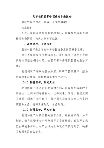 / 【七哥公文】2024年:某学校校园餐专项整治自查报告+更多免费公文+VX:QiGeGongWen2024