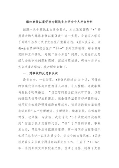 / 【七哥公文】2024年:爆炸事故以案促改专题民主生活会个人发言材料+更多免费公文+VX:QiGeGongWen2024