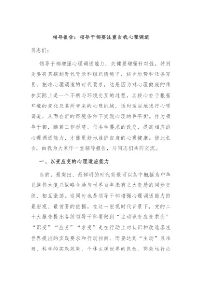/ 【七哥公文】2024年:辅导报告:领导干部要注重自我心理调适+更多免费公文+VX:QiGeGongWen2024