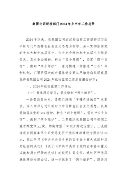 / 【七哥公文】2024年:集团公司纪检部门2024年上半年工作总结+更多免费公文+VX:QiGeGongWen2024