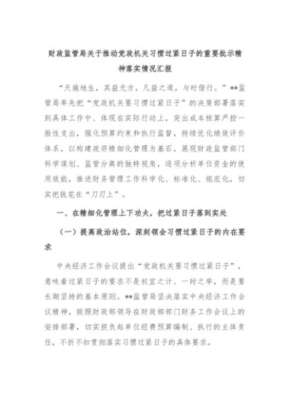 【七哥公文】2024年:财政监管局关于推动党政机关习惯过紧日子的重要批示精神落实情况汇报+更多免费公文+VX:QiGeGongWen2024