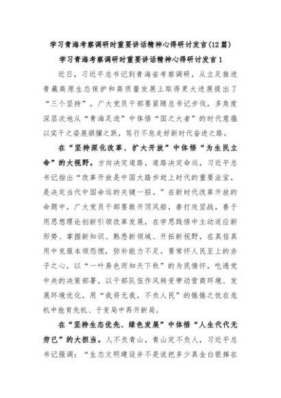 【七哥公文】2024年:(12篇)学习青海考察调研时重要讲话精神心得研讨发言+更多免费公文+VX:QiGeGongWen2024