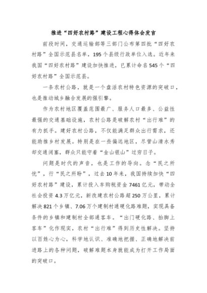 / 【七哥公文】2024年:推进“四好农村路”建设工程心得体会发言+更多免费公文+VX:QiGeGongWen2024