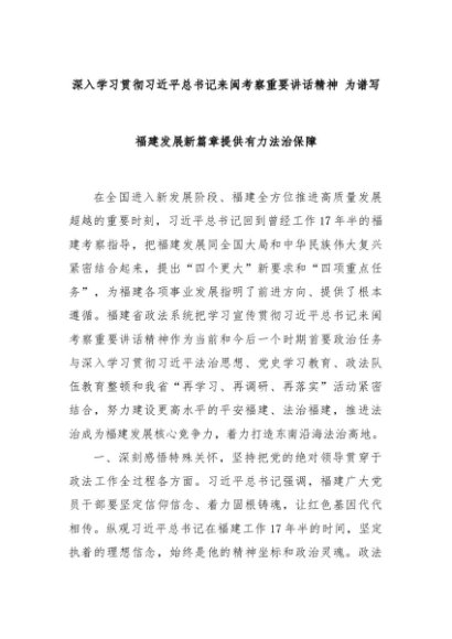 【七哥公文】2024年:深入学习贯彻习总书记来闽考察重要讲话精神 为谱写福建发展新篇章提供有力法治保障+更多免费公文+VX:QiGeGongWen2024