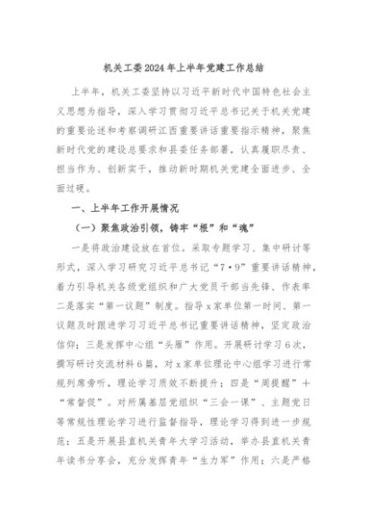 / 【七哥公文】2024年:机关工委2024年上半年党建工作总结+更多免费公文+VX:QiGeGongWen2024