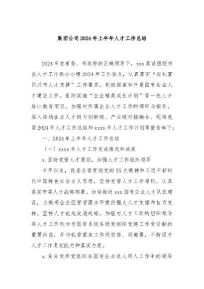 / 【七哥公文】2024年:集团公司2024年上半年人才工作总结+更多免费公文+VX:QiGeGongWen2024