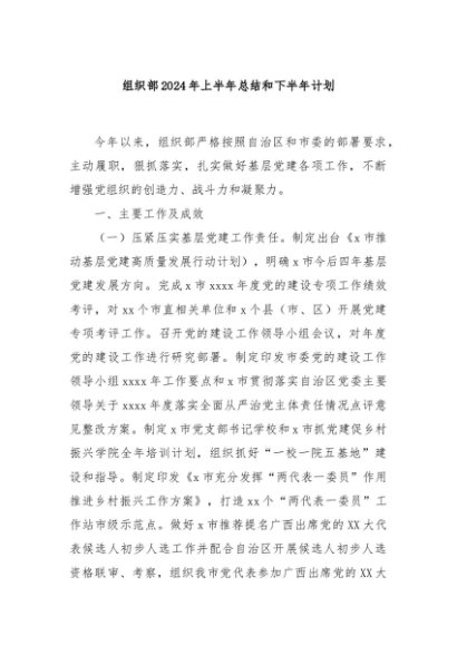 / 【七哥公文】2024年:组织部2024年上半年总结和下半年计划+更多免费公文+VX:QiGeGongWen2024