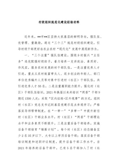 / 【七哥公文】2024年:村级组织规范化建设经验材料+更多免费公文+VX:QiGeGongWen2024
