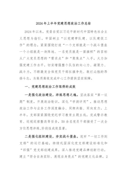 / 【七哥公文】2024年:2024年上半年党建思想政治工作总结+更多免费公文+VX:QiGeGongWen2024