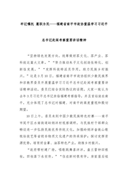 【七哥公文】2024年:牢记嘱托 履职为民——福建省南平市政协重温学习习总书记赴闽考察重要讲话精神+更多免费公文+VX:QiGeGongWen2024