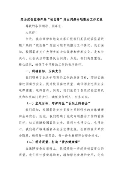 【七哥公文】2024年:某县纪委监委开展“校园餐”突出问题专项整治工作汇报 (1)+更多免费公文+VX:QiGeGongWen2024