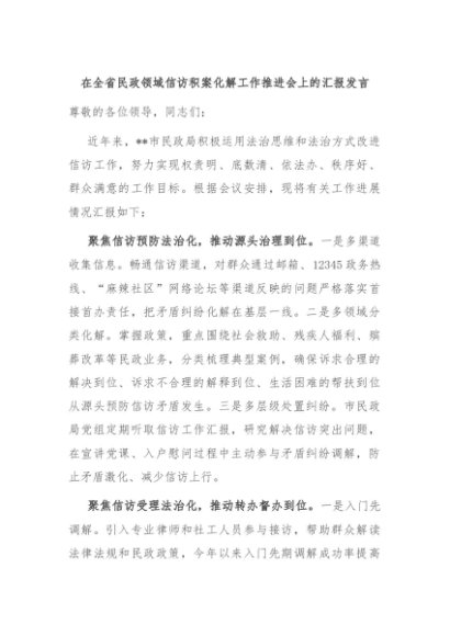 / 【七哥公文】2024年:在全省民政领域信访积案化解工作推进会上的汇报发言+更多免费公文+VX:QiGeGongWen2024
