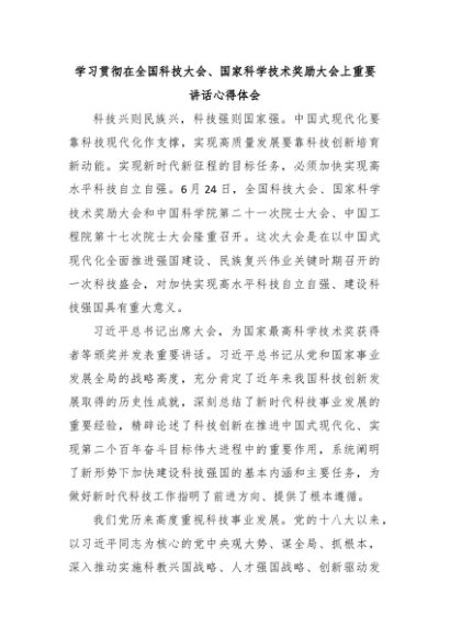 【七哥公文】2024年:学习贯彻在全国科技大会、国家科学技术奖励大会上重要讲话心得体会+更多免费公文+VX:QiGeGongWen2024