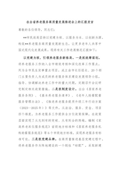 / 【七哥公文】2024年:在全省养老服务高质量发展推进会上的汇报发言+更多免费公文+VX:QiGeGongWen2024