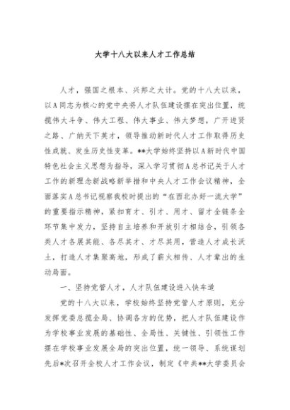 / 【七哥公文】2024年:大学十八大以来人才工作总结+更多免费公文+VX:QiGeGongWen2024
