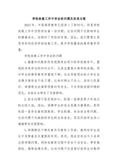 / 【七哥公文】2024年:学校政教工作中存在的问题及改进方案+更多免费公文+VX:QiGeGongWen2024
