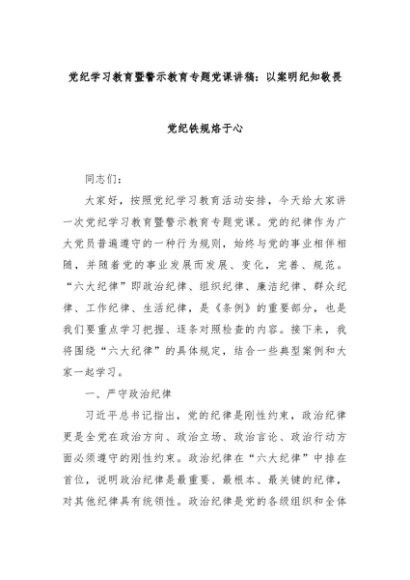 【七哥公文】2024年:党纪学习教育暨警示教育专题党课讲稿:以案明纪知敬畏 党纪铁规烙于心+更多免费公文+VX:QiGeGongWen2024
