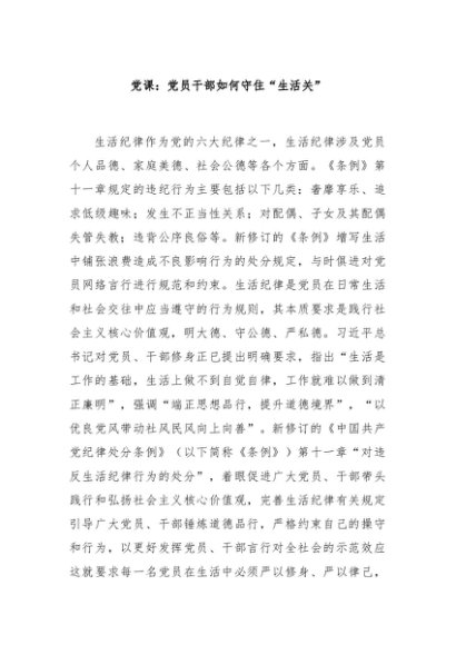 / 【七哥公文】2024年:党课:党员干部如何守住“生活关”+更多免费公文+VX:QiGeGongWen2024