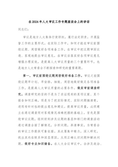 / 【七哥公文】2024年:在2024年人大审议工作专题座谈会上的讲话+更多免费公文+VX:QiGeGongWen2024