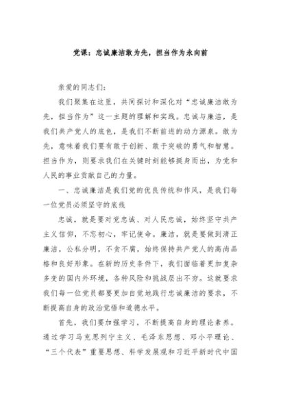 / 【七哥公文】2024年:党课:忠诚廉洁敢为先,担当作为永向前+更多免费公文+VX:QiGeGongWen2024