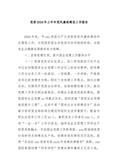 / 【七哥公文】2024年:党委2024年上半年党风廉政建设工作报告+更多免费公文+VX:QiGeGongWen2024