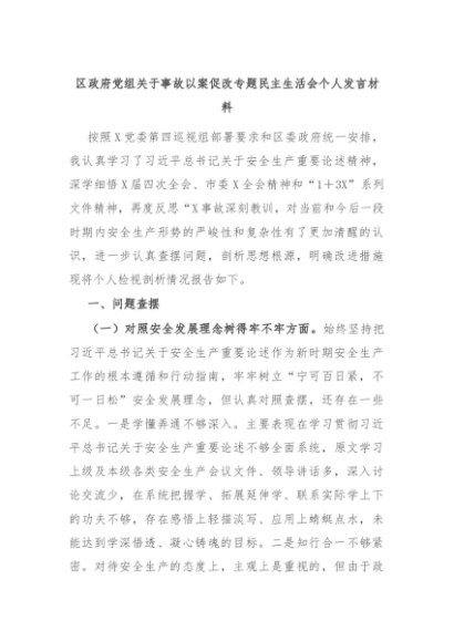 【七哥公文】2024年:区政府党组关于事故以案促改专题民主生活会个人发言材料+更多免费公文+VX:QiGeGongWen2024