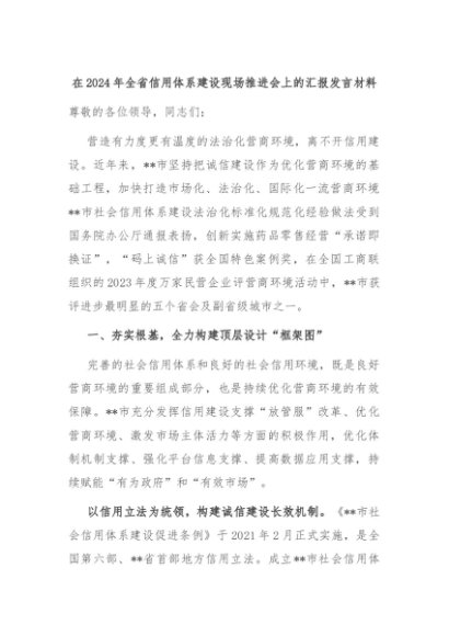 【七哥公文】2024年:在2024年全省信用体系建设现场推进会上的汇报发言材料+更多免费公文+VX:QiGeGongWen2024