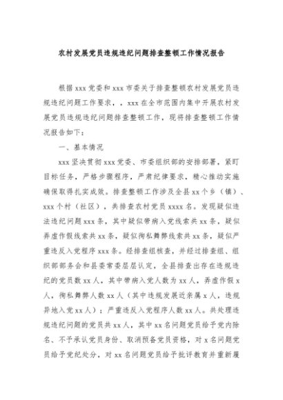 / 【七哥公文】2024年:农村发展党员违规违纪问题排查整顿工作情况报告+更多免费公文+VX:QiGeGongWen2024