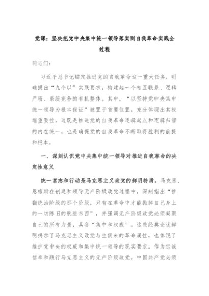 【七哥公文】2024年:党课:坚决把党中央集中统一领导落实到自我革命实践全过程+更多免费公文+VX:QiGeGongWen2024