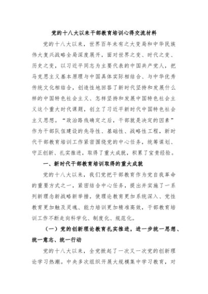 / 【七哥公文】2024年:党的十八大以来干部教育培训心得交流材料+更多免费公文+VX:QiGeGongWen2024